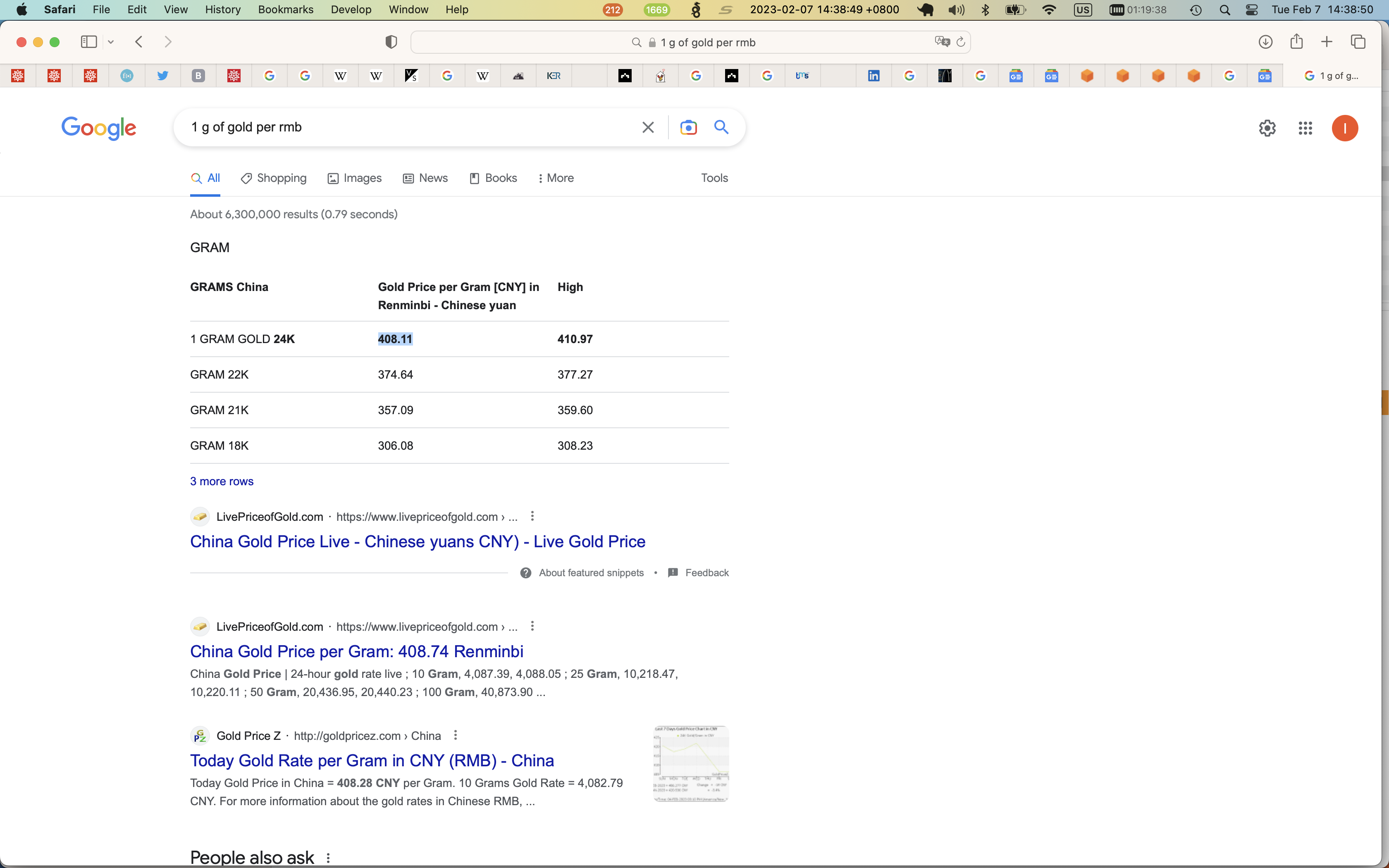 20 grams of 24K gold (I think it’s 24K) for 10’100 RMB? Not a very good deal if the current price of gold is about 408.11 RMB per gram (see Screenshot 2023-02-07 at 14.38.50.png)